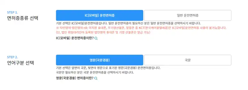 면허증 종류 선택란에는 기본적으로 IC(모바일) 운전면허증이 선택되어 있는데 되도록 그대로 재발급하는 것을 추천합니다.