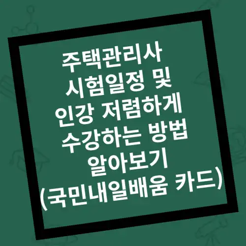 주택관리사 시험일정 인강 저렴하게 수강하는 방법(국민내일배움 카드) 알아봤습니다. 취업이 잘되고 정년이 없어 오랫동안 일할 수 있으며 나이 많은 신 분들도 쉽게 할 수 있는 주택관리사에 모두 합격하시기를 바랍니다.